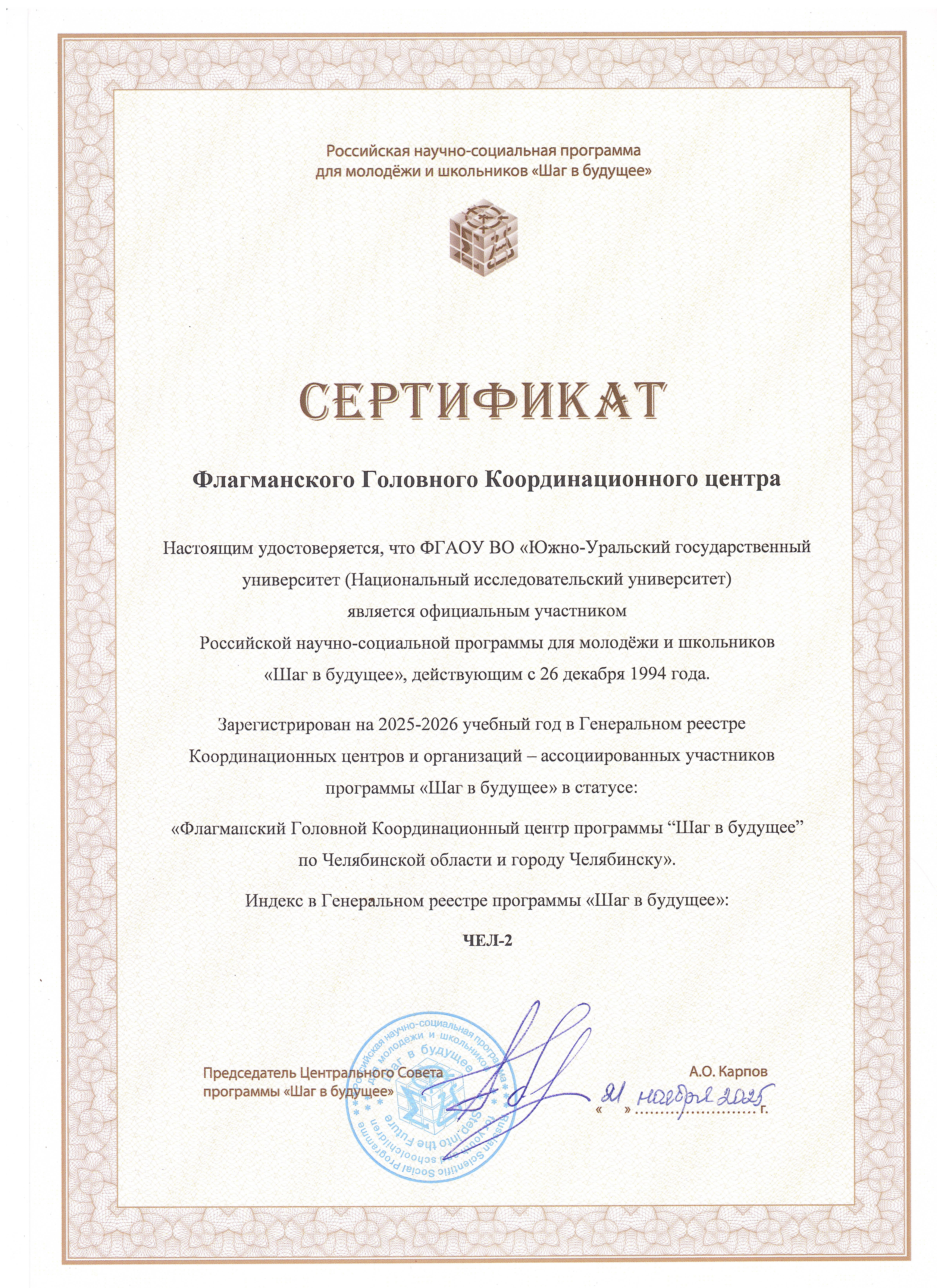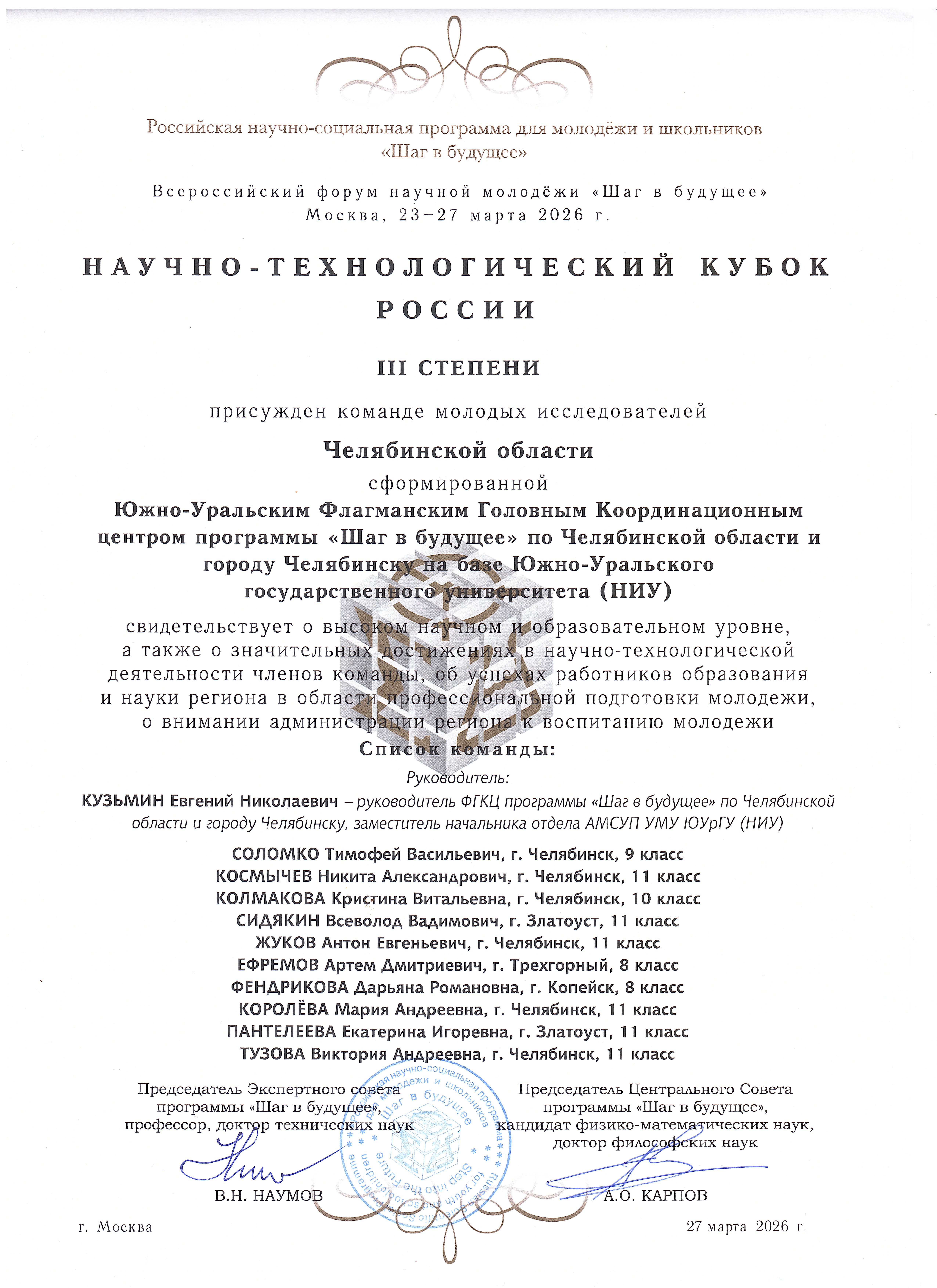 Южно-Уральская интеллектуально-социальная программа для молодёжи и школьников «Шаг в будущее…»